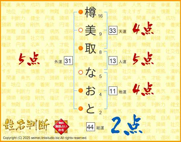 樽美取なおとさんの総運は44画の2点!