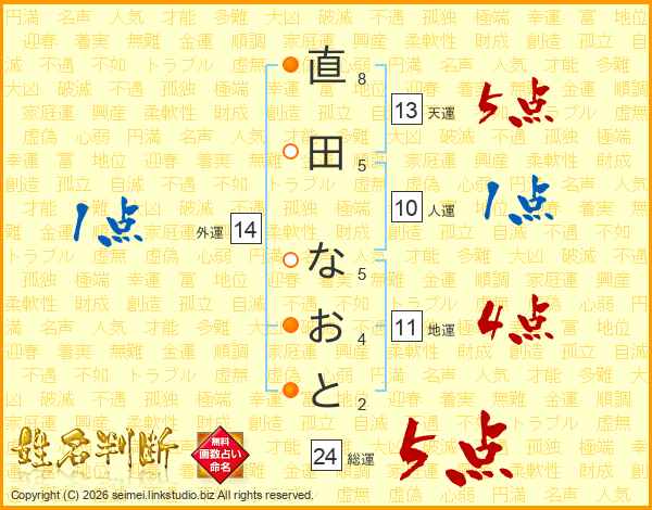 直田なおとさんの総運は24画の5点!