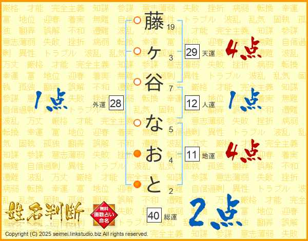 藤(19画)ヶ(3画)谷(7画) な(5画)お(4画)と(2画)