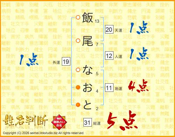 飯尾なおとさんの総運は31画の5点!