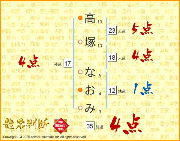 高塚なおみさんの総運は35画の4点!