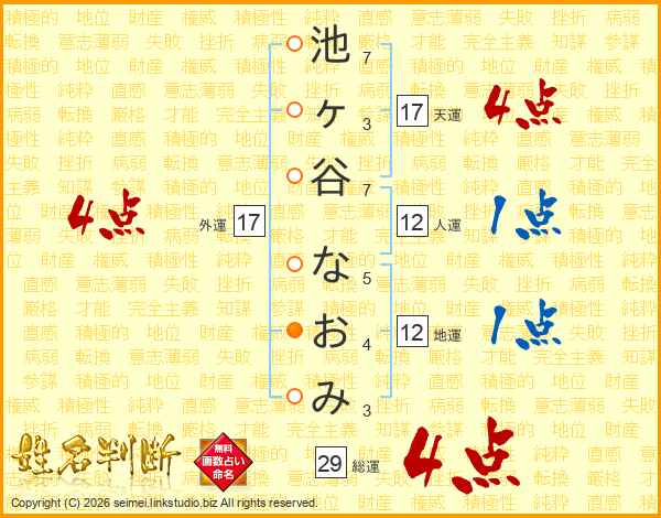 池ヶ谷なおみさんの天運は17画の4点!