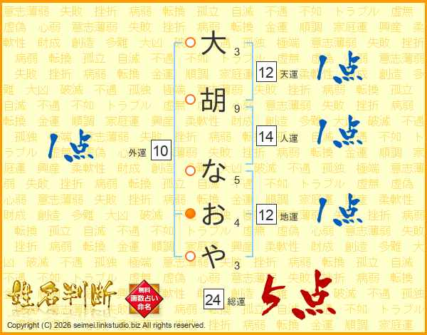 大胡なおやさんの総運は24画の5点!