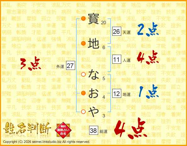 寳地なおやさんの総運は38画の4点!