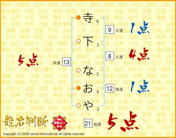 寺下なおやさんの総運は21画の5点!