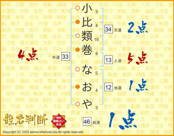 小(3画)比(4画)類(19画)巻(8画) な(5画)お(4画)や(3画)