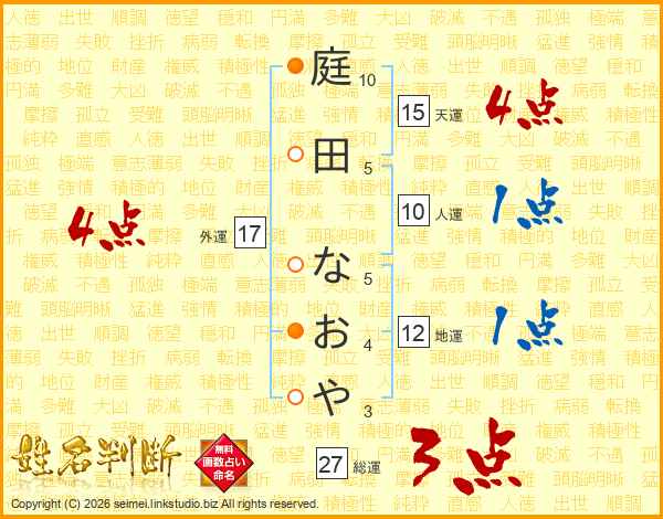 庭田なおやさんの総運は27画の3点!