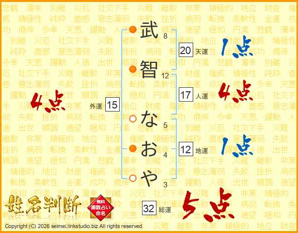 武智なおやさんの総運は32画の5点!