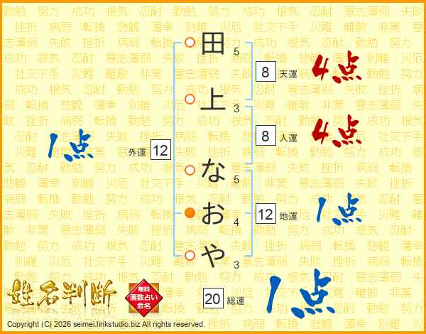 田(5画)上(3画) な(5画)お(4画)や(3画)