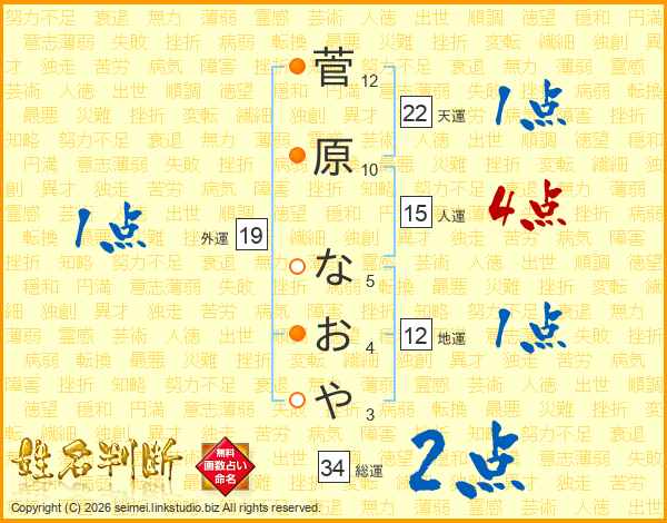 菅原なおやさんの総運は34画の2点!