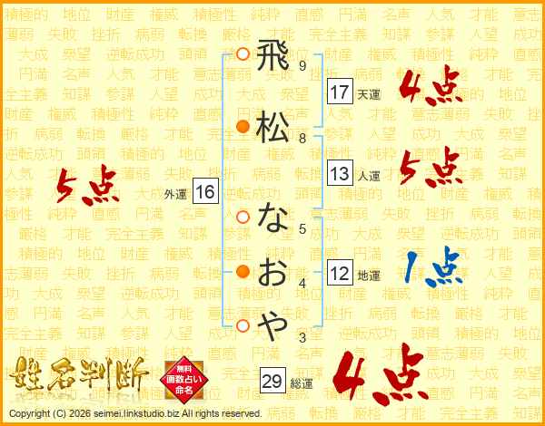飛松なおやさんの総運は29画の4点!