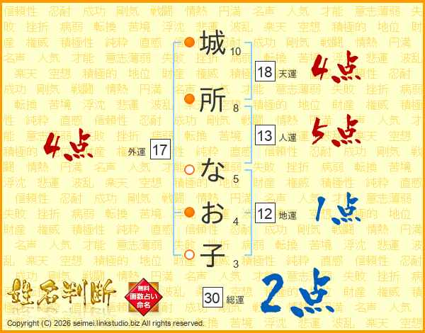 城所なお子さんの天運は18画の4点!