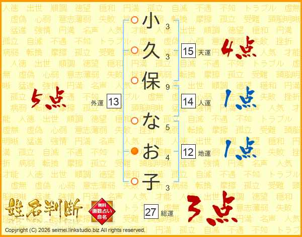 小久保なお子さんの総運は27画の3点!