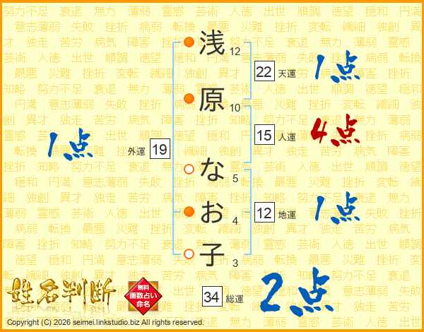 浅原なお子さんの総運は34画の2点!