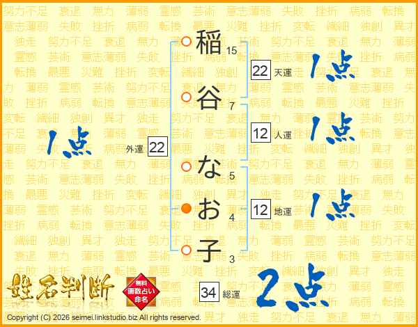 稲谷なお子さんの天運は22画の1点!