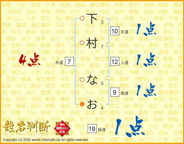 下村なおさんの総運は19画の1点!