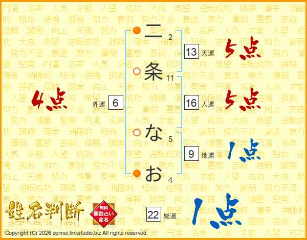 二条なおさんの天運は13画の5点!