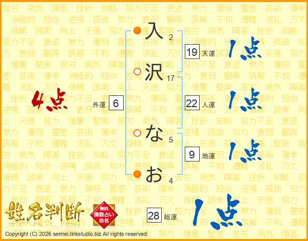 入沢なおさんの総運は28画の1点!