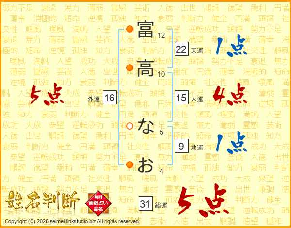 富高なおさんの総運は31画の5点!