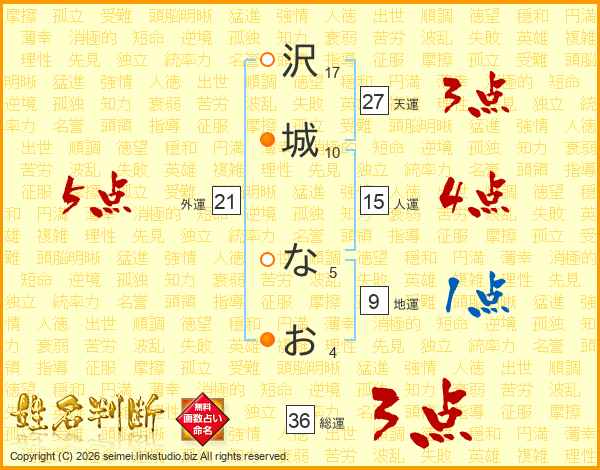 沢城なおさんの総運は36画の3点!