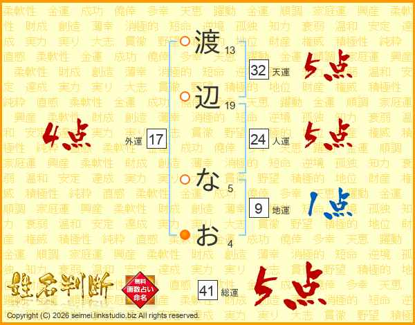 渡辺なおさんの総運は41画の5点!