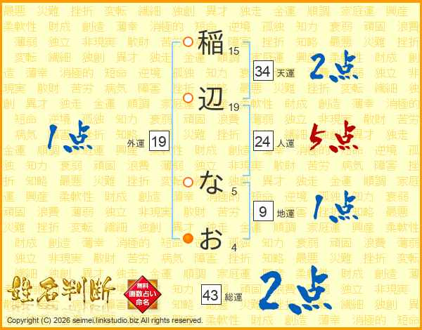 稲辺なおさんの総運は43画の2点!