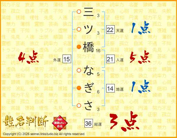 三ツ橋なぎささんの総運は36画の3点!