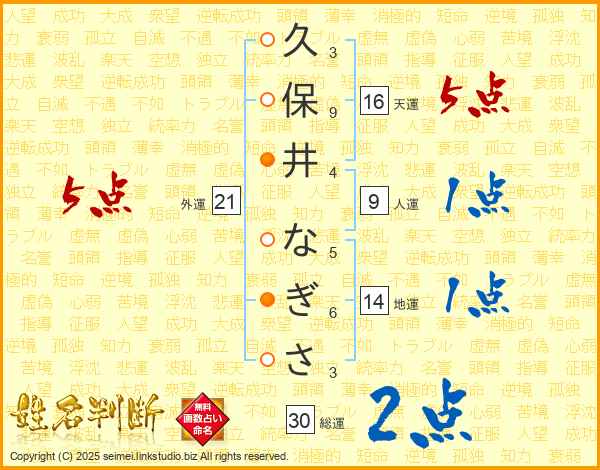 久(3画)保(9画)井(4画) な(5画)ぎ(6画)さ(3画)