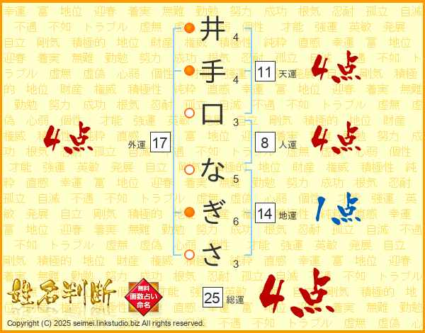 井手口なぎささんの総運は25画の4点!