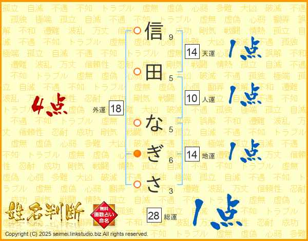 信田なぎささんの総運は28画の1点!