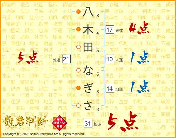 八木田なぎささんの外運は21画の5点!