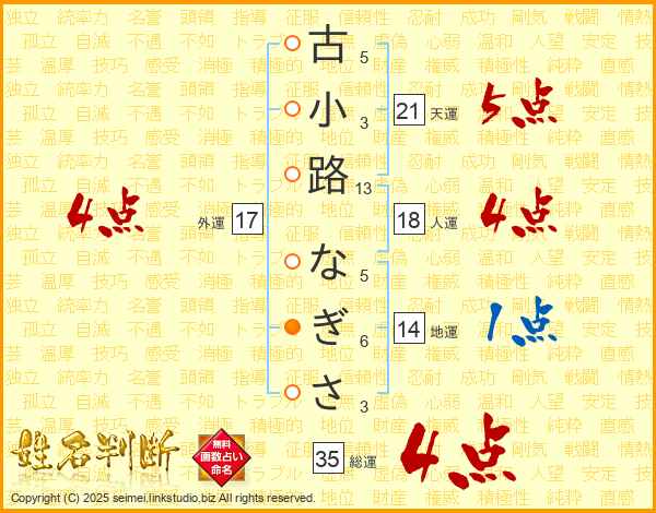 古(5画)小(3画)路(13画) な(5画)ぎ(6画)さ(3画)
