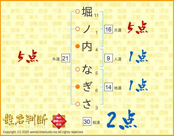 堀ノ内なぎささんの総運は30画の2点!