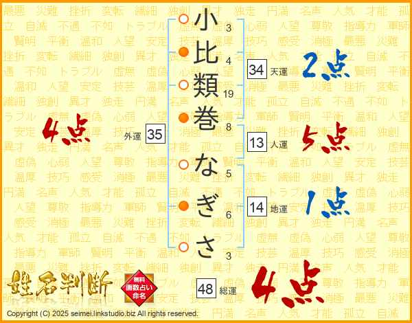 小(3画)比(4画)類(19画)巻(8画) な(5画)ぎ(6画)さ(3画)