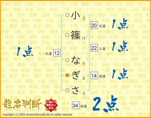 小(3画)篠(17画) な(5画)ぎ(6画)さ(3画)