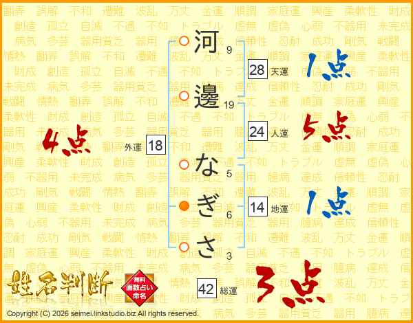 河邊なぎささんの総運は42画の3点!