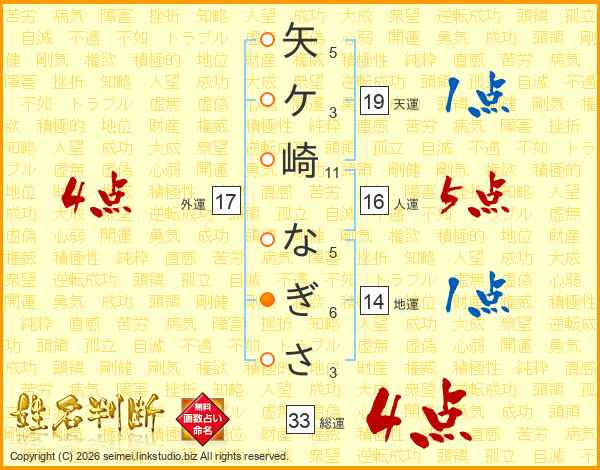 矢ケ崎なぎささんの外運は17画の4点!