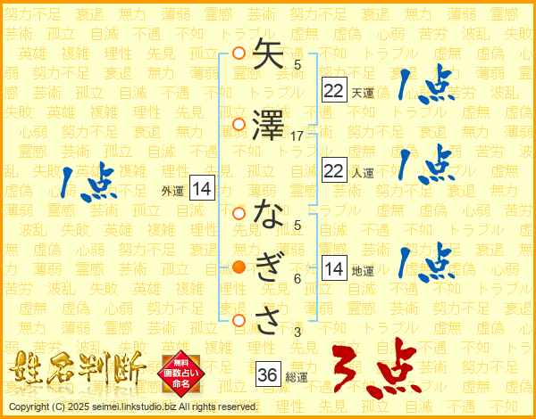 矢(5画)澤(17画) な(5画)ぎ(6画)さ(3画)