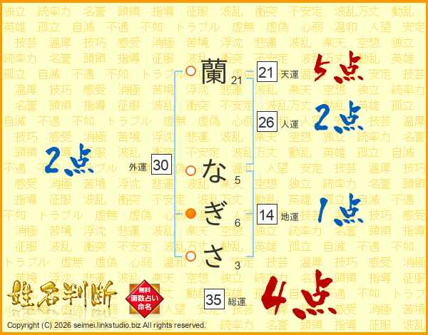 蘭なぎささんの総運は35画の4点!