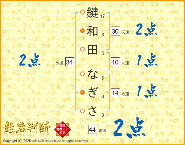 鍵和田なぎささんの天運は30画の2点