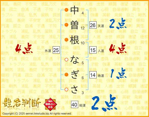 中曽根なぎささんの総運は40画の2点