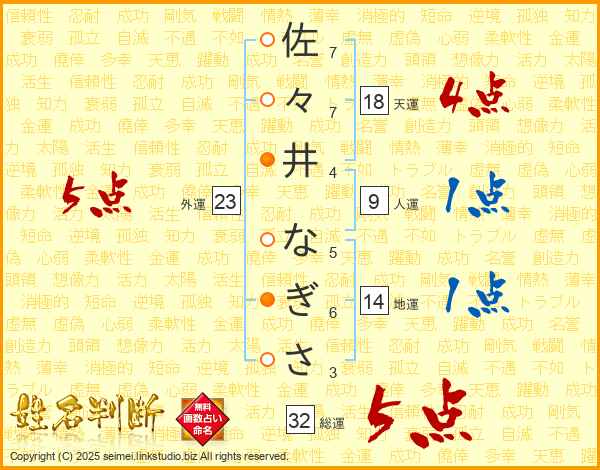 佐々井なぎささんの総運は32画の5点!