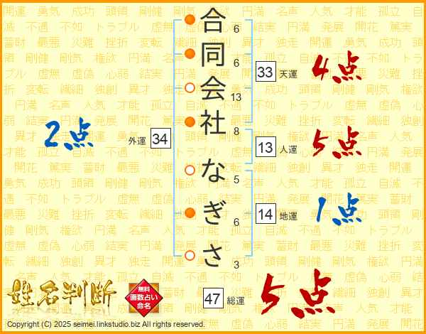 合同会社なぎささんの天運は33画の4点!