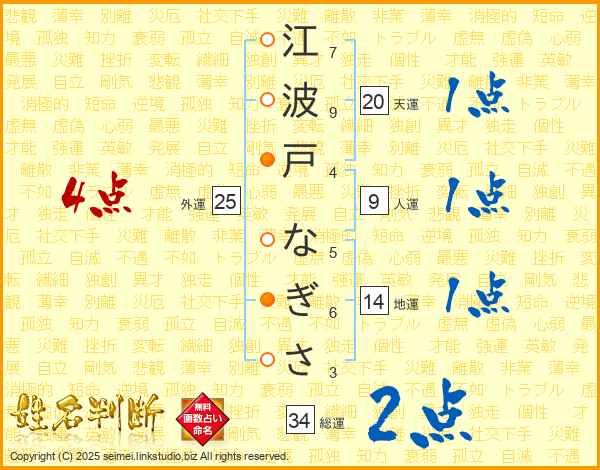 江波戸なぎささんの総運は34画の2点!