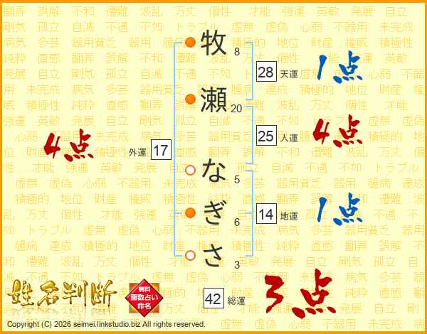 牧瀬なぎささんの総運は42画の3点!