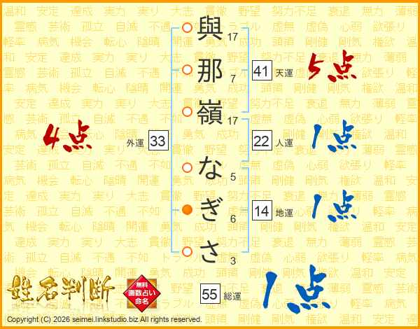 與那嶺なぎささんの総運は55画の1点!