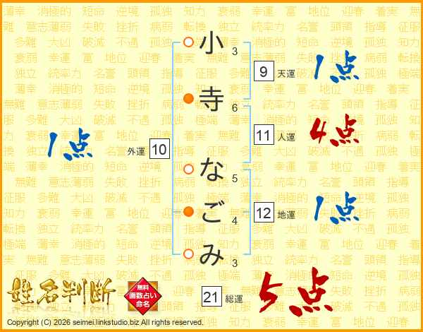 小寺なごみさんの総運は21画の5点!