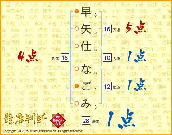 早矢仕なごみさんの総運は28画の1点!