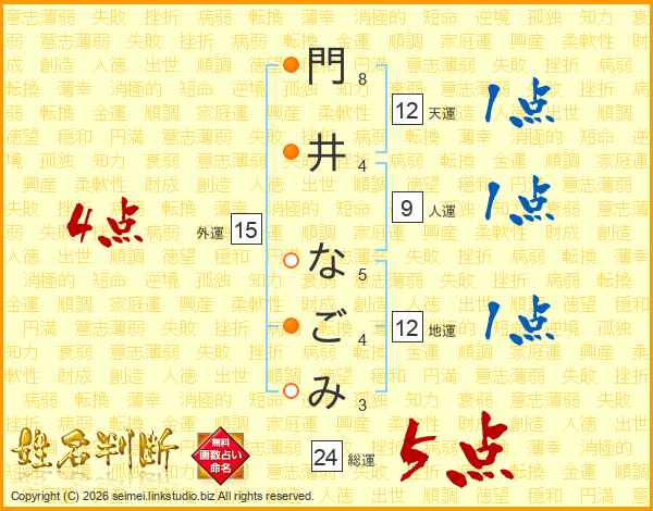 門井なごみさんの総運は24画の5点!