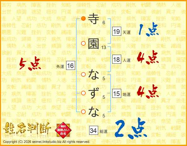 寺(6画)園(13画) な(5画)ず(5画)な(5画)